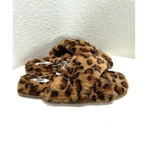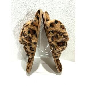 BP Slippers NEW $29 Faux Fur Animal Print Cross Band Open Toe