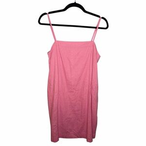 Chic pink sleeveless dress. Perfect for casual summer outings. Square neckline and adjustable straps for added comfort. Invisible back zipper closure. 55% linen dress. Smoke free home. New without tags