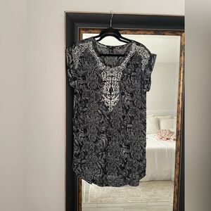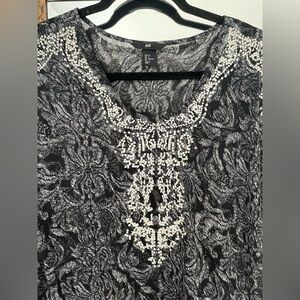 @jleeem Hi :) sorry for the wait, I have added a closer picture of the detailing. It’s a knitted print. No beads. I have also added a picture of material. 100% polyester. Hope this helps :)