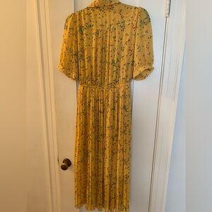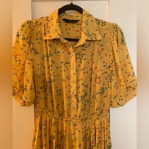 Perfect for any occasion, this dress features a vibrant yellow hue adorned with charming red, blue, green circle patterns.