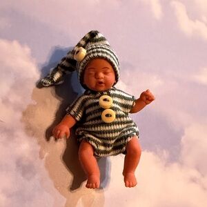 Adorable set of 4 miniature baby figurines in various shades. Perfect for dollhouses or decorations. Series 1 - one darker skinned baby.