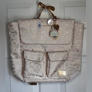 NWT B&BW Disney Princess Backpack with Gold Bow Top & Charms (Design 1)
