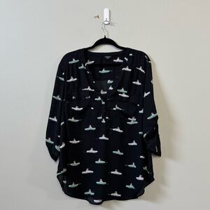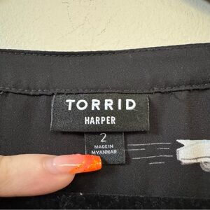 Great pre owned condition women’s Torrid black frenchies Harper georgette 3/4 serve pullover blouse, gently used shape.