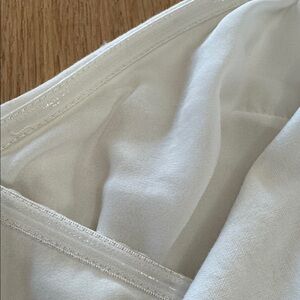 Elegant white dress with long sleeves. Features a stylish neckline . Perfect for any occasion.