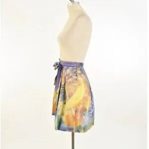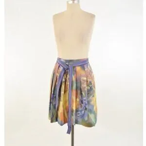 Moschino Skirt 4 Floral Tie Dye Pleated Flare Belt Luxury Painting Multicolor