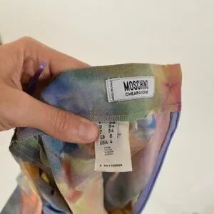A colorful arrangement of colors on this luxury tie dye / floral print pleated skirt by Moschino's Cheap & Chic line. Size 4