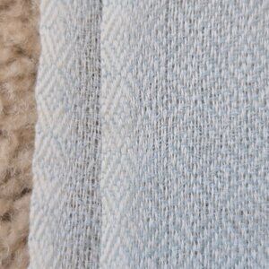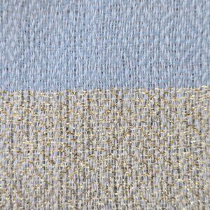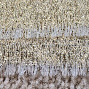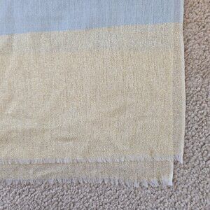 At first glance, it might look like the ends of this scarf are a sandy off-white color, but there is actually gold thread woven into the cashmere. It really adds a little something special...a sutble shimmer. Not a single flaw on this scarf--it's perfect. No damage, no stains, no holes, no runs, no pet hair, no odor.