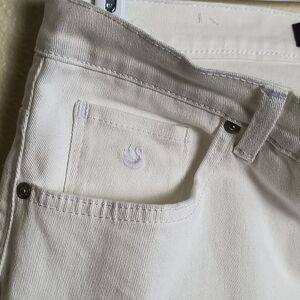 Classic white jeans with a straight-leg fit. Versatile and chic.
