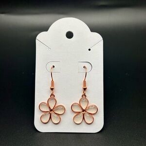 Add a touch of elegance with these beautiful flower drop earrings. Featuring a delicate gold finish, these earrings are perfect for any occasion.