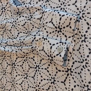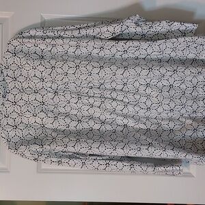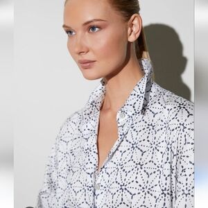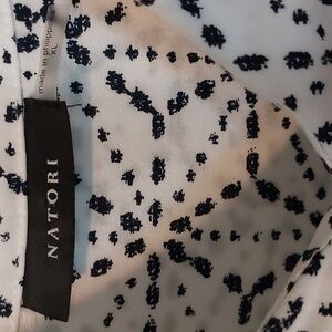 Natori Asagao Button Up Cotton Sateen Blouse White And Black XL NWOT