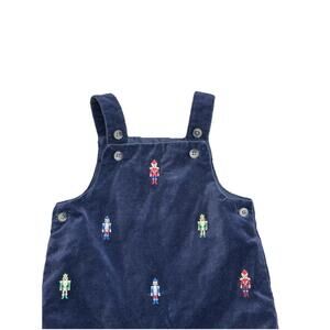The Janie & Jack Velvet Dog Nutcracker Baby one-piece overalls in navy blue are perfect for your little one, aged 3 to 6 months. Made of soft cotton velvet fabric, this festive outfit features nutcracker characters embroidered on the solid blue color. The snap and button closure, square neckline, and adjustable straps make dressing and undressing easy. Ideal for various occasions like parties or holiday gatherings, this overall outfit is both stylish and comfortable for your baby to wear during the winter season. Gently worn. No signs of wear. Smoke-free, pet-free home.