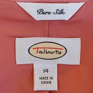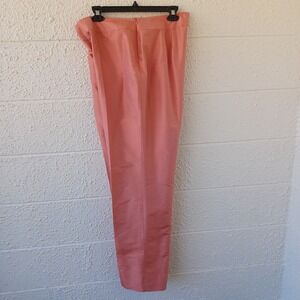 Talbots Womens Coral Pink 100% Pure Silk 2 Piece Pant Suit Blazer Set Size 14