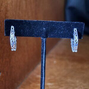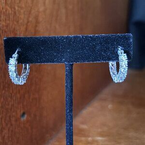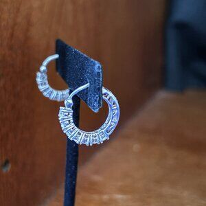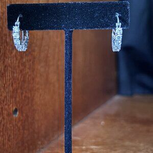 Sterling Silver CZ Hoop Earrings 925 DQ Sparkle Hinged