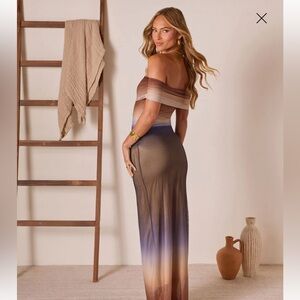 Vici Ombré Gradient Mesh Off-Shoulder Maxi Ettie Dress