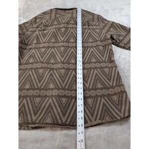 Roark Manawa Tapu Nordsman mens size large heavyweight woven shirt in a bold Aztec/Maori-inspired tribal geometric pattern featuring green, gray, and brown tones. Designed with snap front closure, flap chest pockets, elbow patches, and in classic fit, this versatile shacket blends outdoor utility with modern athleisure styling. Crafted in a durable heavyweight material, its perfect for layering in cooler weather, hiking, travel, or everyday rugged casual wear. A standout piece from Roark known for adventure-inspired design and quality construction.