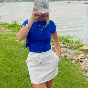 Love Streak White Drawstring Sweatshirt Like Fleece Skirt Pockets Summer Coverup