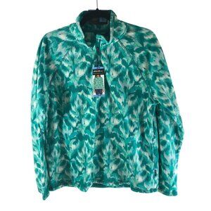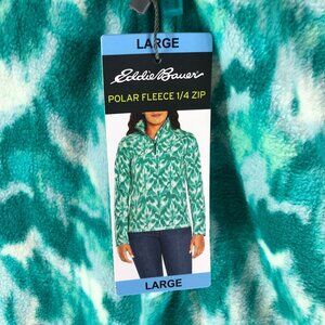 Eddie Bauer Womens Polar Fleece 1/4 Zip Leaf Print Turquoise Green L