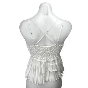 Free People Adella White Lace Peplum Sleeveless Cami Camisole Crop Tank Top L