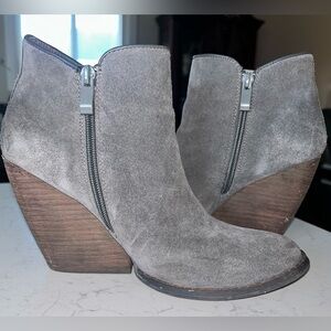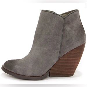(SZ 9 PLEASE READ) Very Volatile Whitby Charcoal Suede Leather Wedge Booties