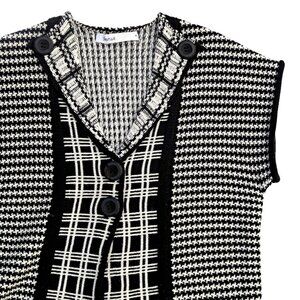 Skovhuus Merino Wool Blend Sweater Cardigan – Black & White Knit, Size Small