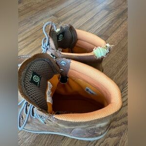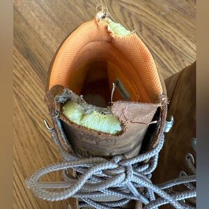 Timberland Redwood Falls men’s waterproof leather boots with SOME AESTHETIC DAMAGE (see photos), courtesy of one of our dogs. The right shoe is missing its insole for the same reason. These are otherwise fully functional boots if you are willing to overlook the chew marks. :) Item description from Timberland website below. Open to offers!