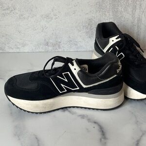 New Balance 574 Black and White Platform Sneakers