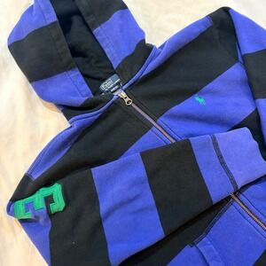 Polo Ralph Lauren Boys Blue Black Striped Full Zip Hoodie 3 Pony Size M 10-12