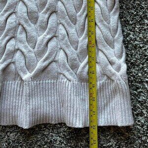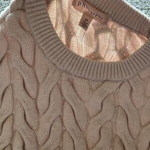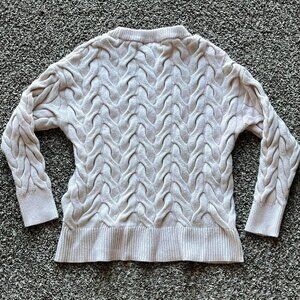 Cream/Baby Pink Small Cable Knit Sweater with Ribbed Neckline