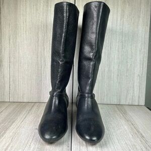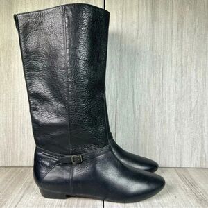 Frye Bonnie Black Leather Low Heel Flat Mid Calf Tall Ring Boots Women’s Size 6