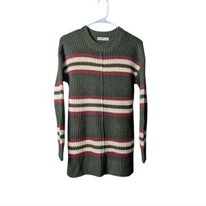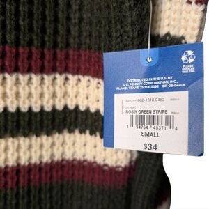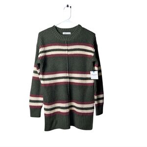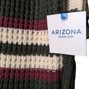 New Arizona Jean Co Olive Green Cream Maroon Red Striped Sweater Holiday Crew