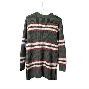 New! Cozy olive green sweater with cream and red burgundy stripes. Perfect for fall, winter, holiday, Thanksgiving, Xmas, Christmas, new year, etc!