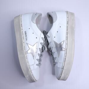 GOLDEN GOOSE Hi Star Platform Sneakers White Metallic Silver Women's 38/US 8