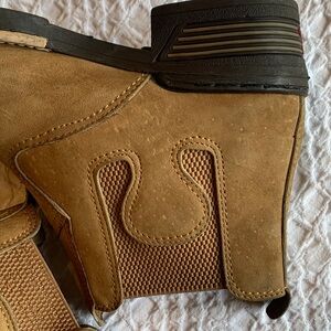 Stylish tan western boots featuring an intricate embroidered design. Perfect for a rugged yet fashionable look.