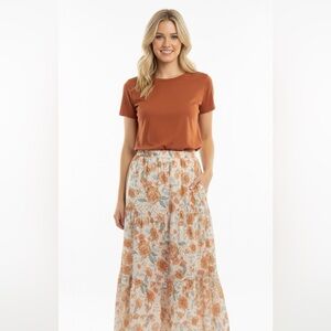 Hayden pull on Floral tiered boho Skirt Orange and Blue size large
