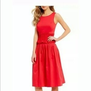 ANTONIO MELANI GALEO DRESS MIDI SMOCKED ELASTIC WAIST PLEATED RED SIZE 10