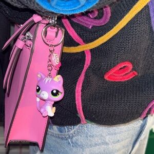 Littlest Pet Shop Purple Puma Cat Keychain purse Charm