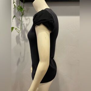 Chic black blouse with puff sleeves. Perfect for versatile styling. Excellent like new condition please see pictures for measurements.