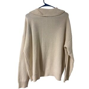 Stylish cream sweater with vibrant multicolor crochet accents. Features a classic V-neck design. Perfect for adding a pop of color to your wardrobe.