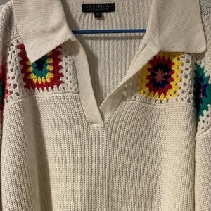 Joseph A VTG Colorful Crochet Accent Knit Cottagecore Granny Sweater XL