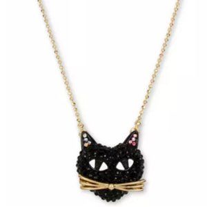 Be black cat perfection in this awesome jet pavé pendant necklace fashioned by Betsey Johnson in gold-tone and hematite-tone mixed metal. Approximate length: 16" + 3" extender. Approximate drop: 1-1/4".