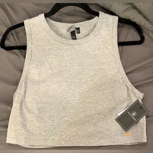 Stylish gray crop top. Sleeveless design. Soft and comfortable fabric. Perfect for casual wear.