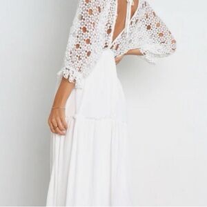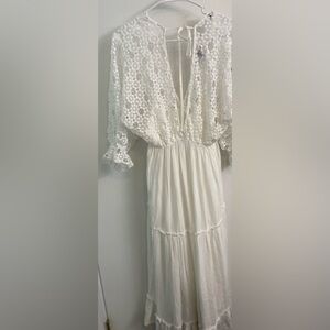 This elegant white lace dress is perfect for any occasion. Its delicate design and flowing silhouette offer a timeless look. Ideal for both casual and formal events. Brand new with tags. Would be perfect for special events, engagement party/pictures, or a wedding.