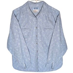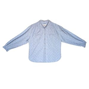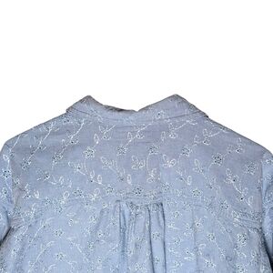 Vintage Chambray Embroidered Eyelet Floral Button-Up Shirt QPS Light Blue Size M