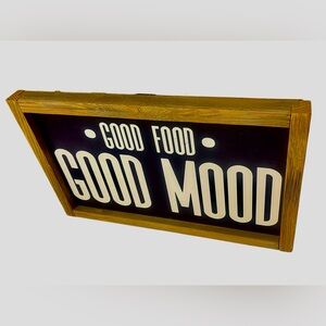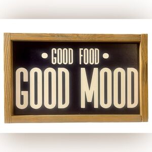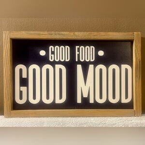 Elevate your kitchen or dining area with this rustic 'Good Food Good Mood' wall art. The black and white design adds a timeless touch to any decor. New with Tags. Distributed by Holly Lobby. Same day shipping. Smoke free home. 2/14