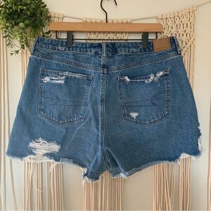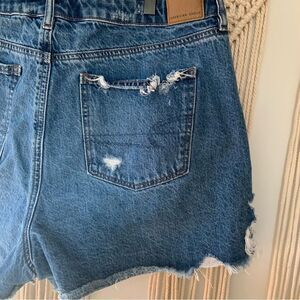 American Eagle Distressed Raw Hem Mom Jean Denim Shorts