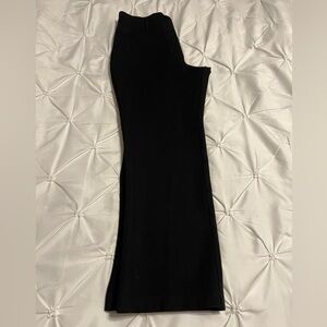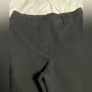 Perfect for work, dressed up or casual, these classic look pants are super yoga comfy. Pull-on style with flat elastic waistband and belt loops. Faux front and back pockets, wrinkle resistant. Material (is on the thicker side) 67% rayon, 28% nylon, 5% spandex.