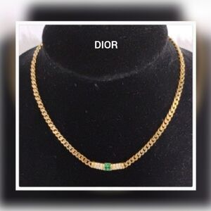 Stunning Authentic Christian Dior Chic gold tone necklace with sparkly green emerald rhinestones and clear crystal stones!! Features a striking green detail. Perfect for any occasion. Luxurious chunky gold chain! Will definitely turn heads wearing this beauty!!