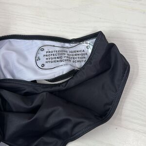 Stylish black and white one-piece swimsuit with a bold V design. Perfect for a chic beach look. 29” shoulder to crotch