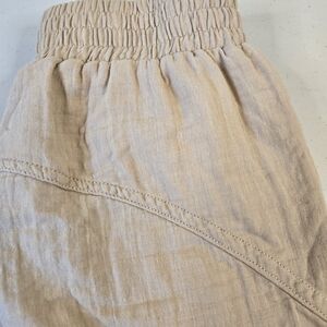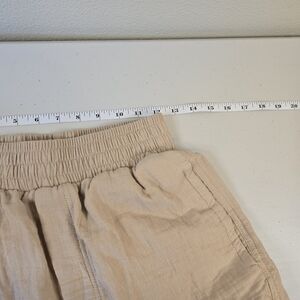Cotton On Body woven dance pants, color is "Sesame", size Small. Front pockets, elastic waist pull-on style, velcro at the hem to adjust. Very soft, almost squishy feeling fabric, moisture wicking.