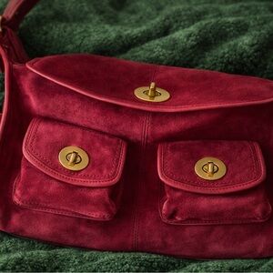 COACH 12797 Vintage Raspberry Limited Edition Bleecker Suede Haversack Hobo
